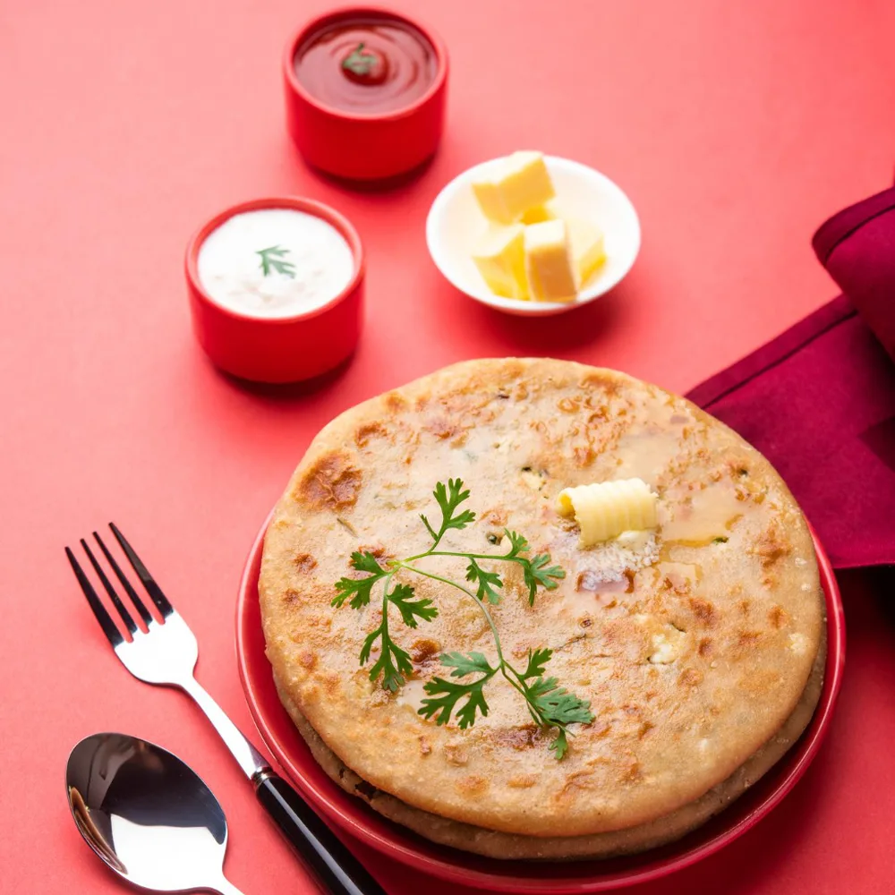 • 1 hot & fresh Aloo Paratha, generously stuffed